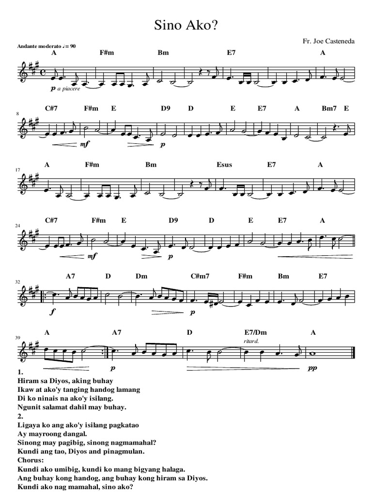 The message keeps our feet firmly on the ground while at the same time helps us set our sights heavenward. Sino Ako was written by Fr. Verse 2 G D7 Kapag nasaktan ka ay huwag kang susuko Em Bm Kahit may takot ka ay huwag kang magtago C D7 Bm Em Di ka nag-iisa kasama mo Ako Am D D7 Tawagin mo lamang di ka mabibigo Chorus.